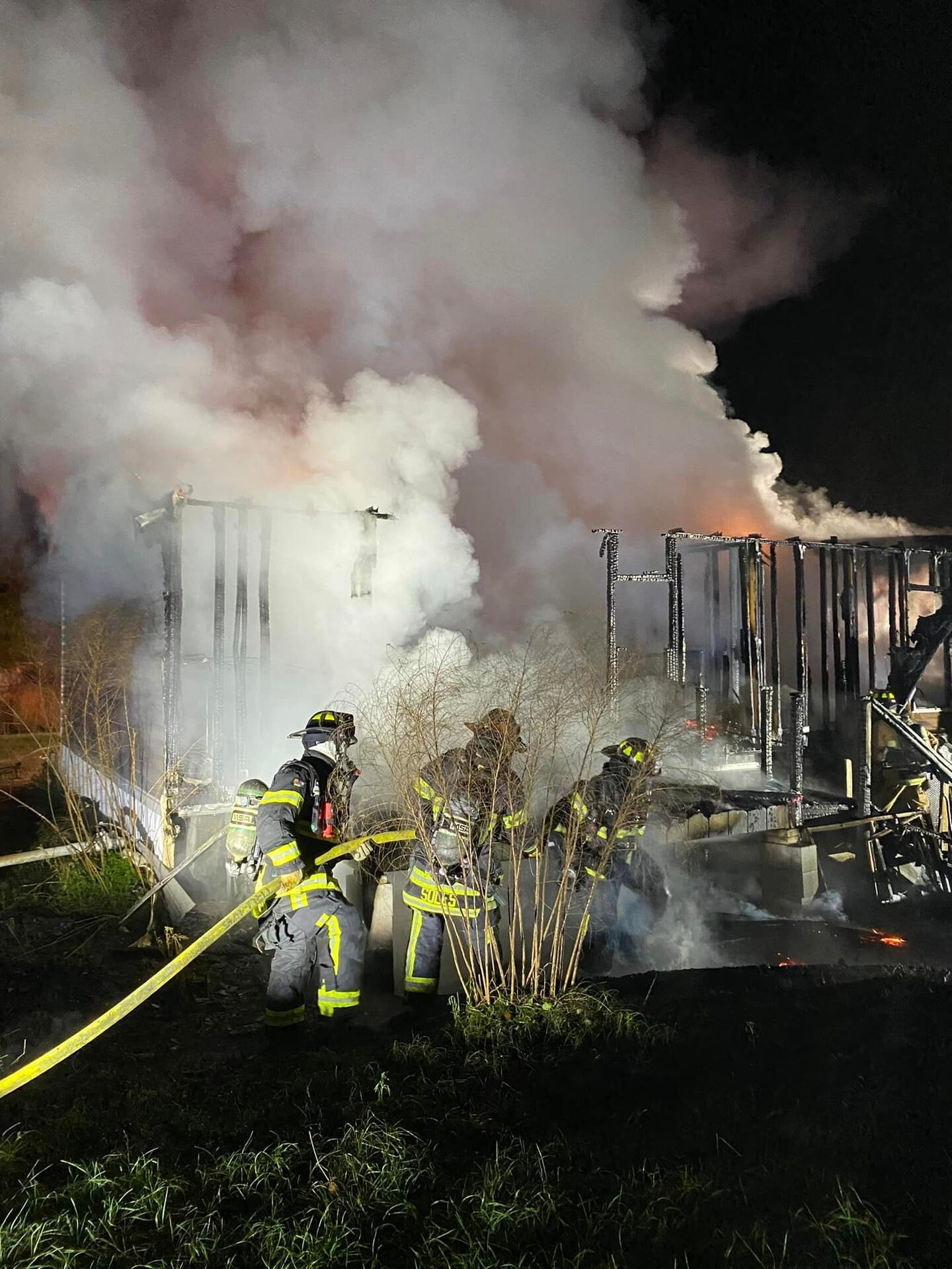 Reports say that within 3 minutes crews arrived on scene to a fully involved mobile home with flames through the roof.