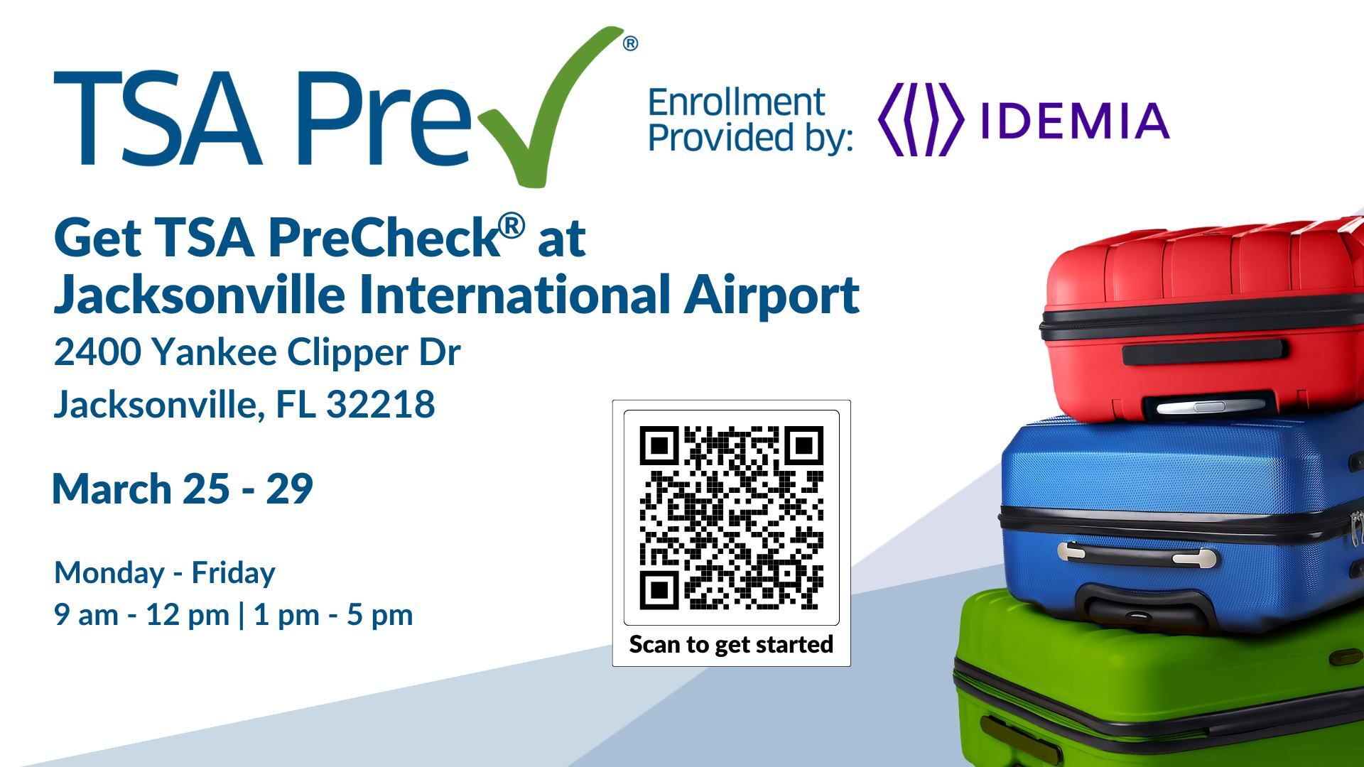 JACKSONVILLE, Fla — Have you been wanting to sign up for TSA Pre-Check? Join the Jacksonville International Airport for a pop-up enrollment event March 25-29.