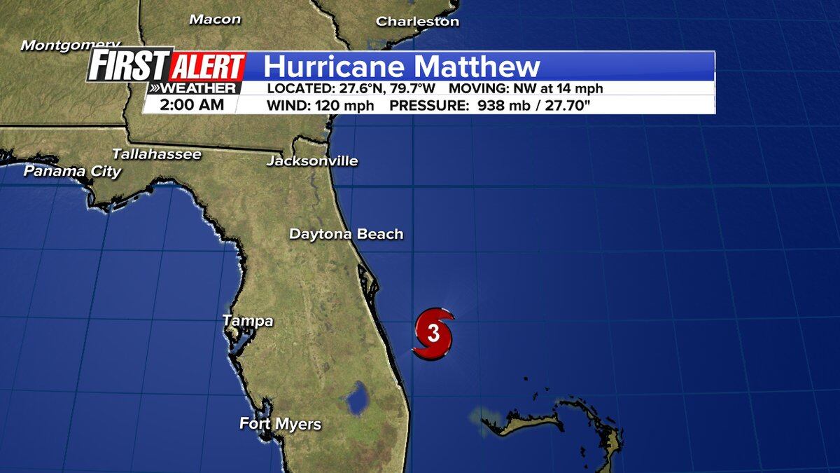 JACKSONVILLE, Fla. — The latest advisory for Hurricane Matthew showed a slight shift east in its track.