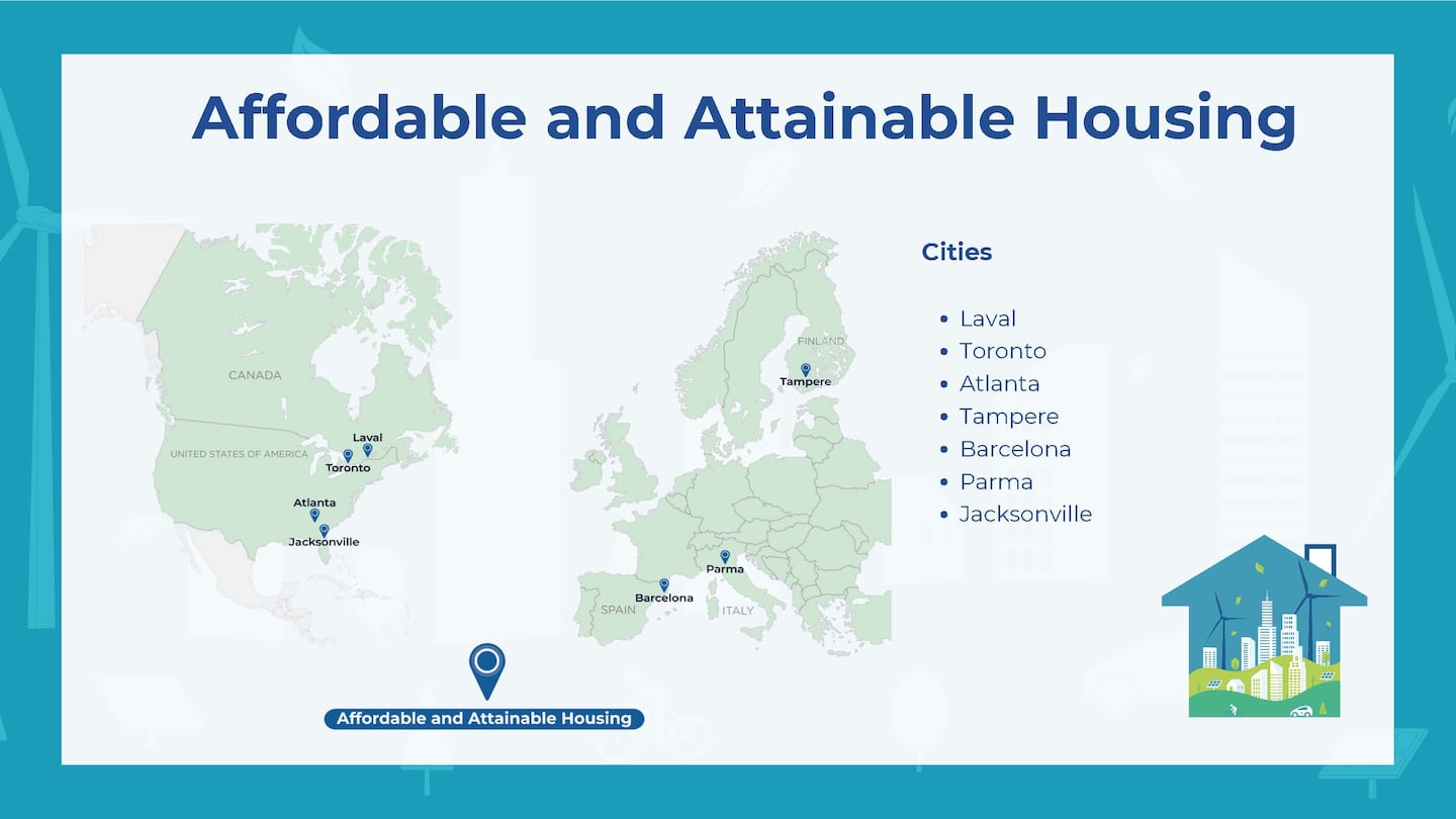 As part of the Affordable and Attainable Housing cluster, Jacksonville will work with cities such as Laval, Toronto, Atlanta, Tampere, Barcelona, and Parma.