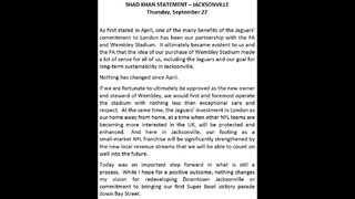 JACKSONVILLE JAGUARS OWNER SHAD KHAN’S FULL STATEMENT: