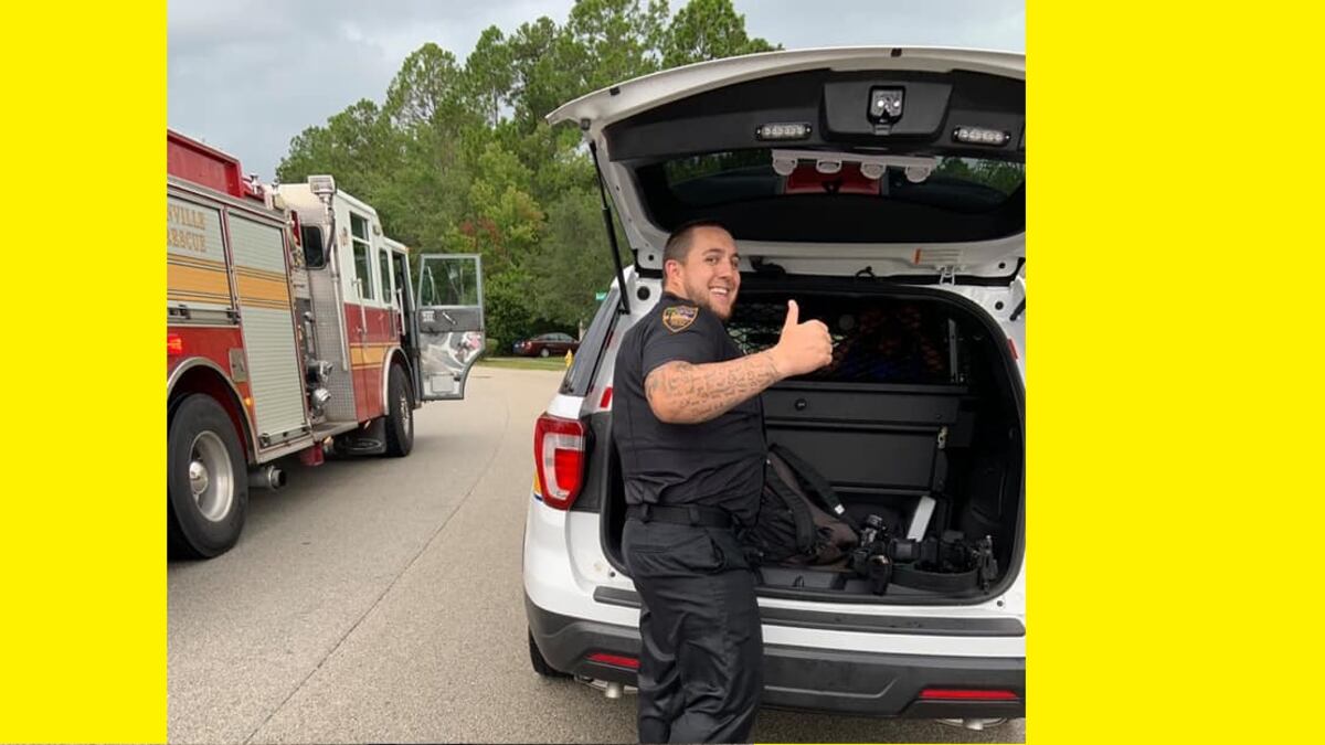 JACKSONVILLE, Fla. — When the Jacksonville Sheriff's Office received a call involving the drowning of a disabled person, Officer Matthew Reddish responded and jumped in a pond in full gear to save an autistic, nonverbal child, JSO says. The child was reunited with his family and is safe.