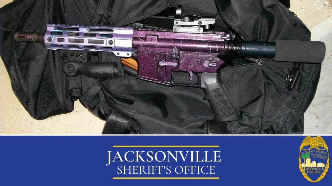JACKSONVILLE, Fla — A traffic stop that originally started for an attached tag not being assigned to the vehicle ultimately led JSO officers with the Zone 5 Task Force to recover four firearms from a convicted felon. In addition to firearm accessories, multiple magazines and live ammunition and over two pounds of marijuana, and over $24,000 in US Currency.
