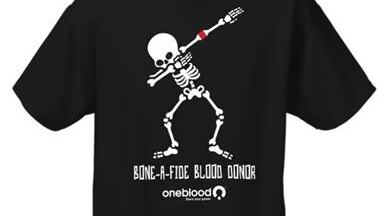 Appointments can be made at any OneBlood Donor Center and anyone who donates will receive a “Bone-A-Fide Blood Donor” T-shirt.