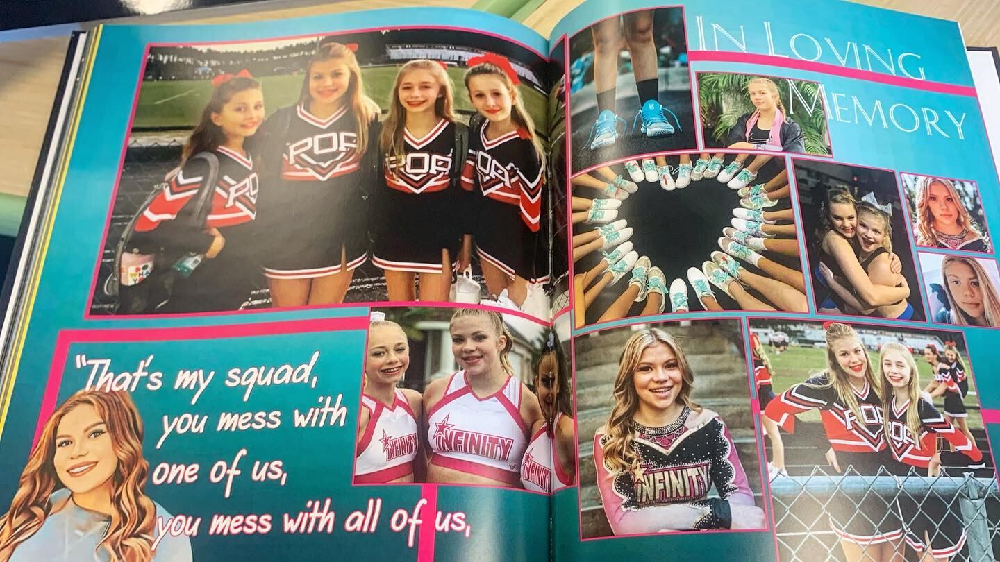 Tristyn’s mom Stacy shared a photo of the double-page yearbook spread, writing: