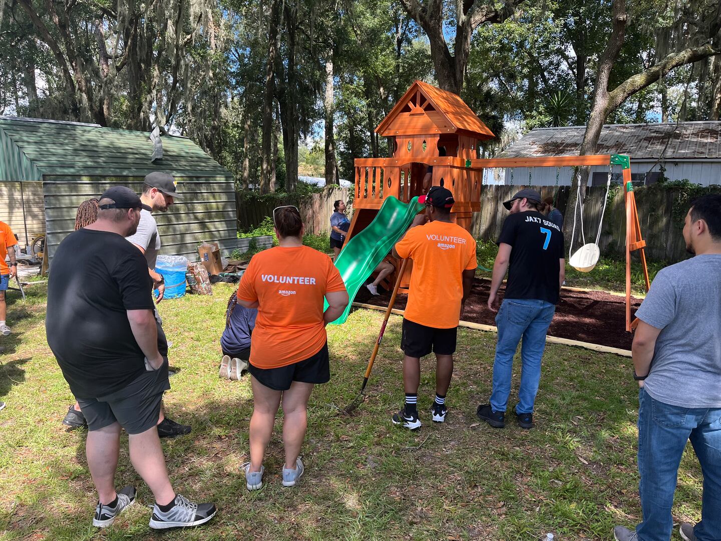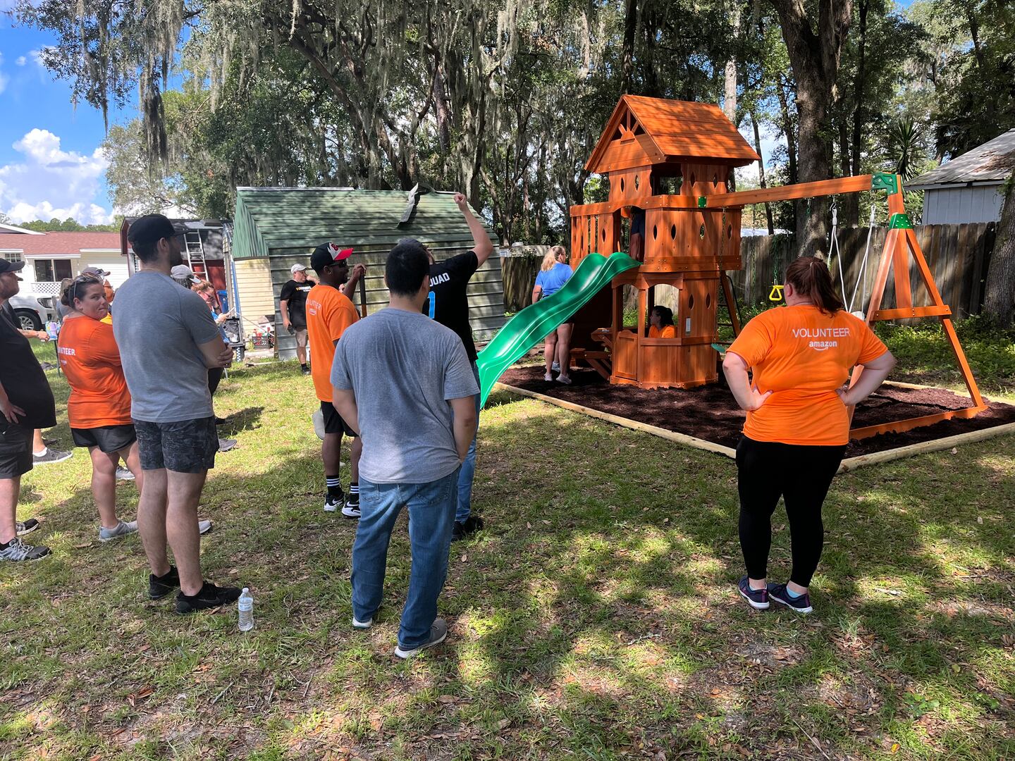 Now, the Roc Solid Foundation, along with volunteers from the Jacksonville community, have brought the playground to Aspen, building her a playset that will hopefully bring her one step closer to a normal childhood.
