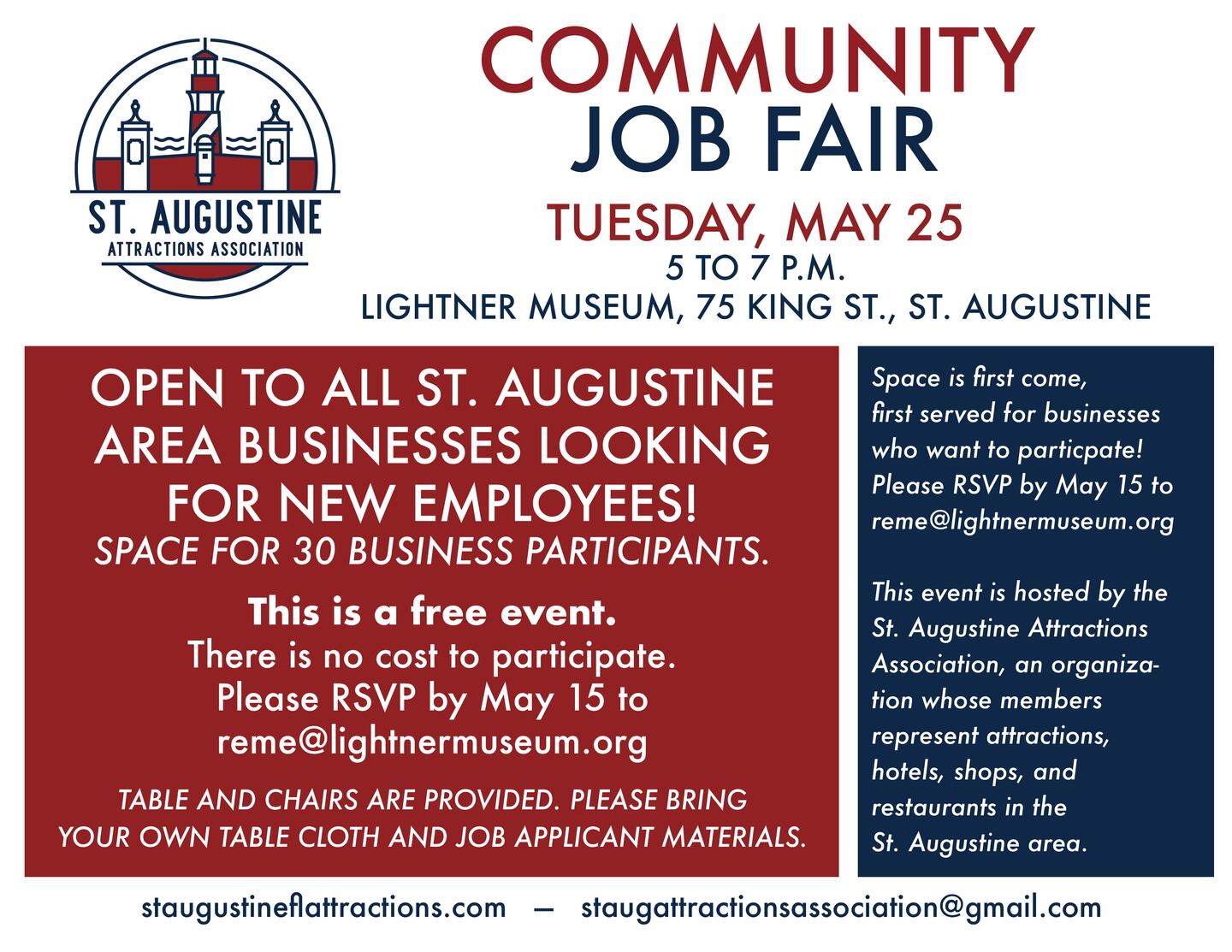 St. Augustine, Fla — On Tuesday, May 25, St. Augustine’s Lightner Museum will host a free community job fair.