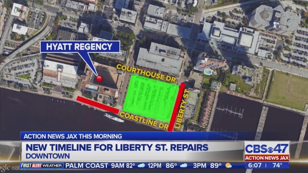 JACKSONVILLE, Fla. — For the second time, the contractor carrying out the reconstruction of Liberty Street and Coastline Drive on the Northbank of Downtown Jacksonville is getting for more time and money for the project- and a third extension is already in the works as well.