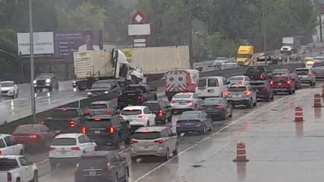 The second crash is located at Edgewood Avenue, where the left lane is blocked by a jackknifed semi truck.