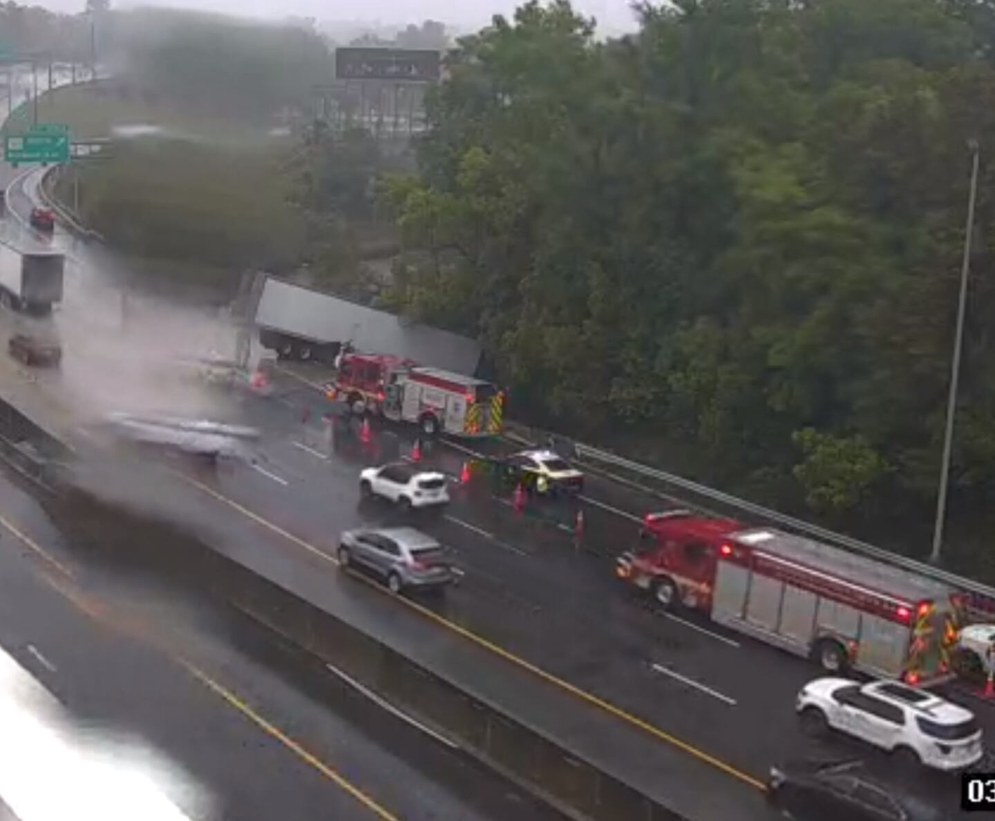 The second crash is located at Edgewood Avenue, where the left lane is blocked by a jackknifed semi truck.