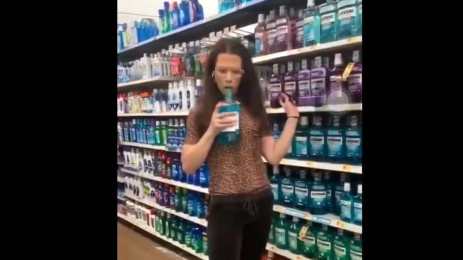 A Twitter user by the name of Bameron Nicole Smith shared a short video of her gargling Listerine before spitting the liquid back into container, and putting it back on the shelf.