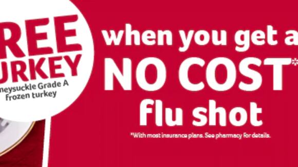 Winn Dixie announced on it's website that customers will get a free turkey when they receive their flu shot at participating Winn Dixie pharmacies through Nov. 21.