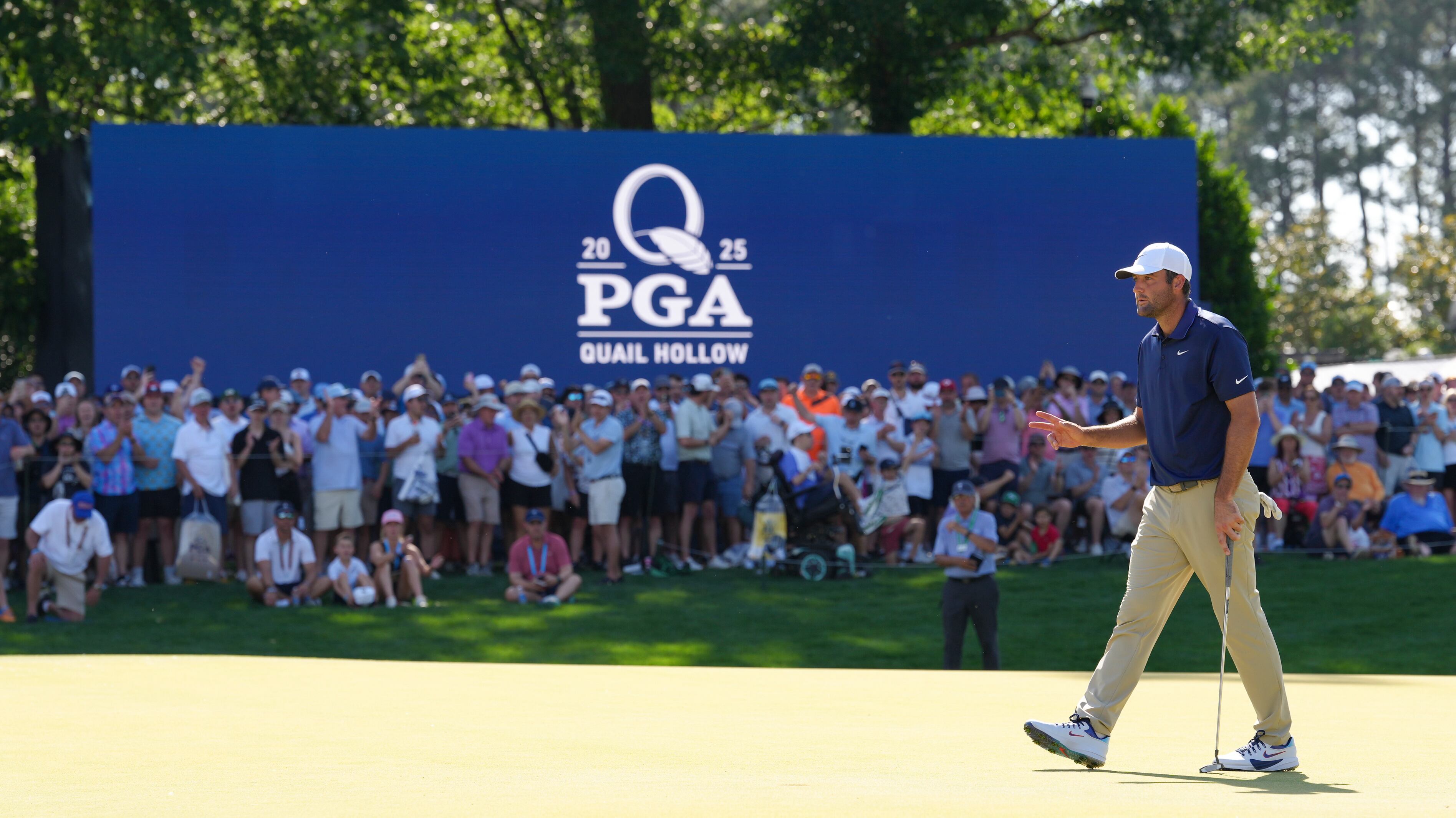 On Sunday at the PGA Championship, the two crossed paths — atop the leaderboard, and at a pair of back-nine greens — and Scheffler came out on top in impressive fashion, winning by five strokes over Bryson DeChambeau, Davis Riley and Harris English.