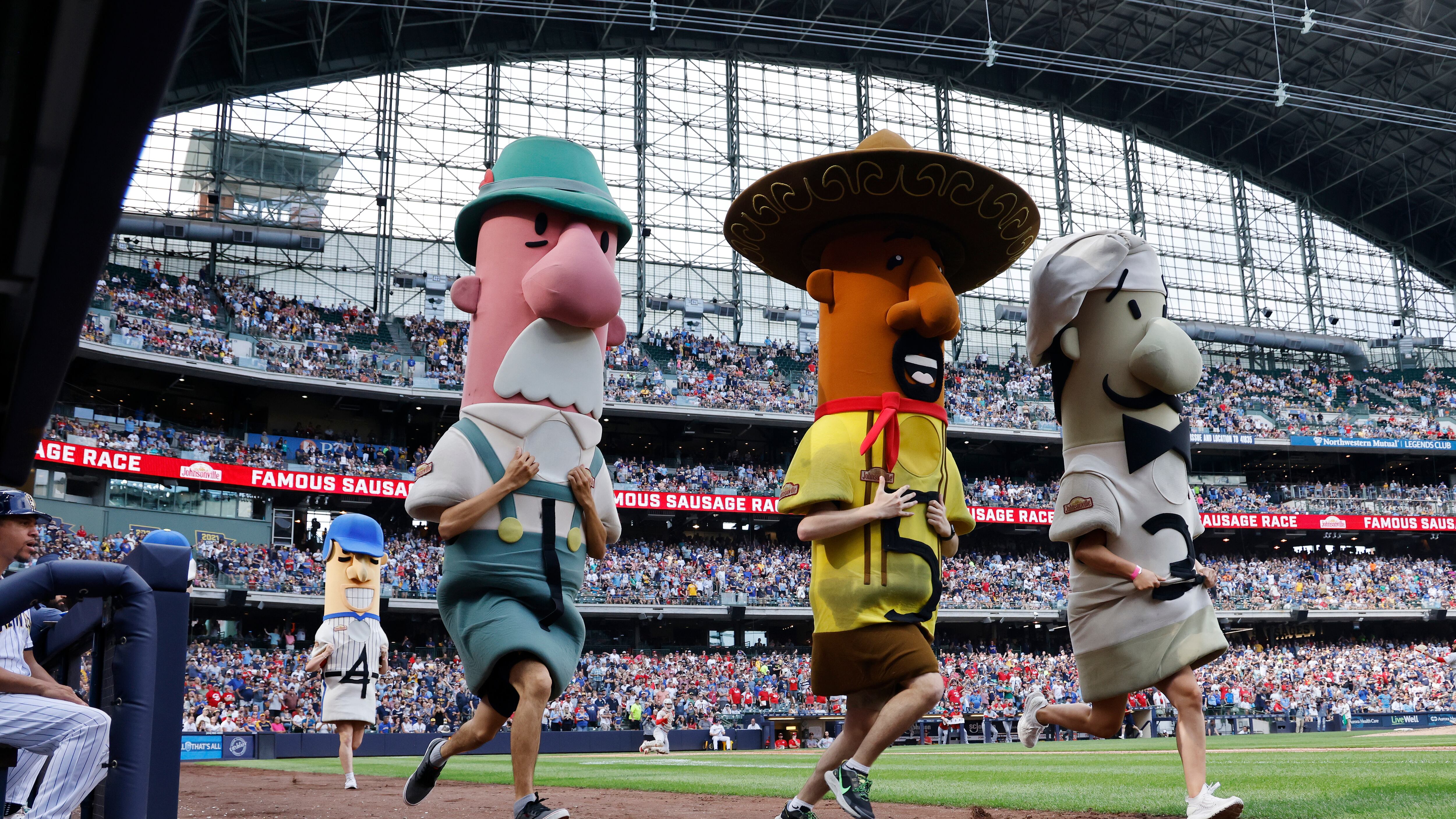 Buxton didn't realize his error until he was standing squarely in the path of Sausage No. 1, a.k.a. Bratwurst. The outfielder at least showed pro athlete-reflexes getting out the way after looking behind himself.
