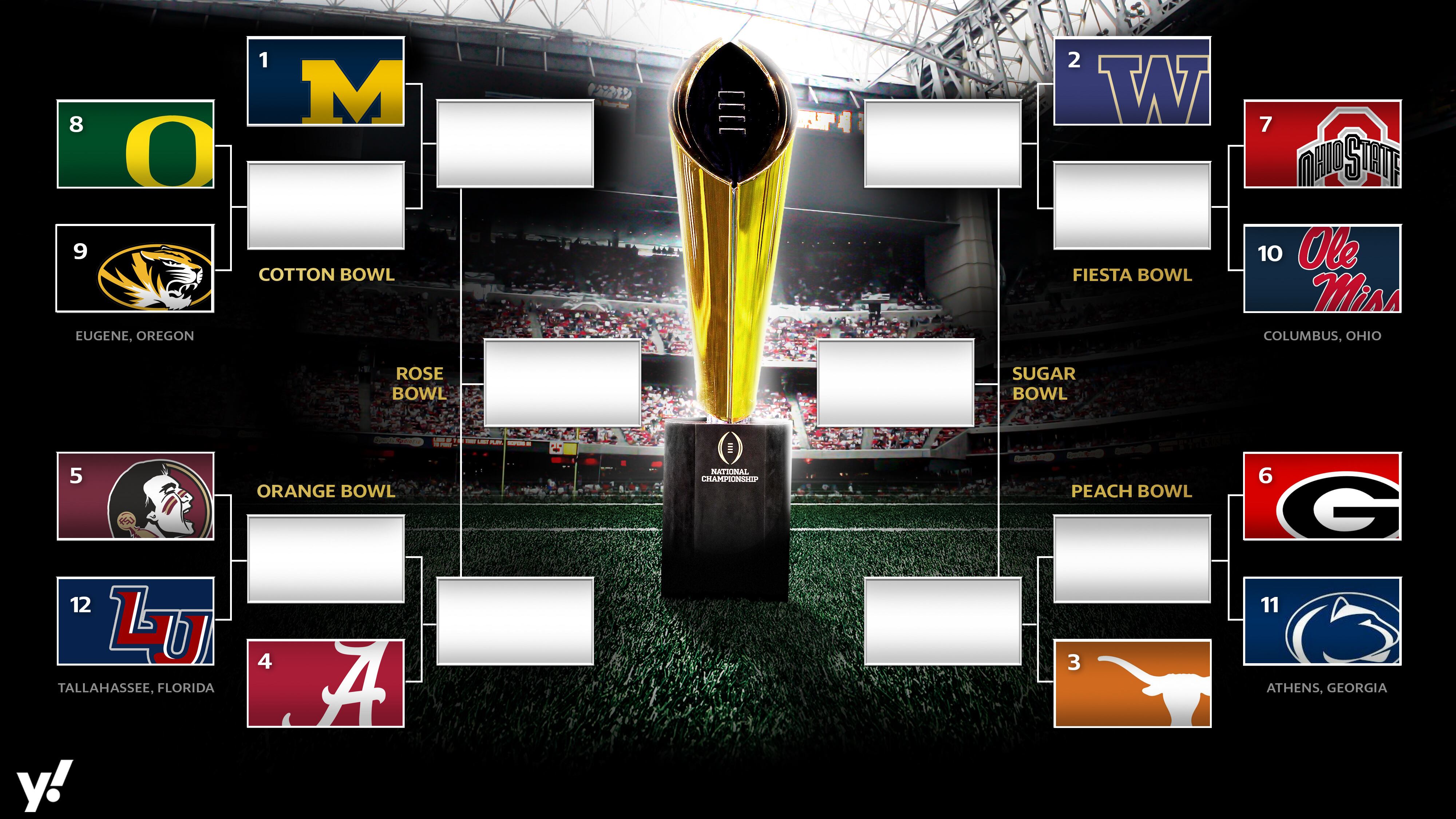 Let's play things out… Assuming the favorites win, the second round would be Michigan-Oregon, Washington-Ohio State, FSU-Alabama and Georgia-Texas. From there, Vegas would likely have Michigan, Alabama, Ohio State and Georgia advancing to the Final Four.