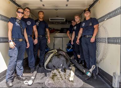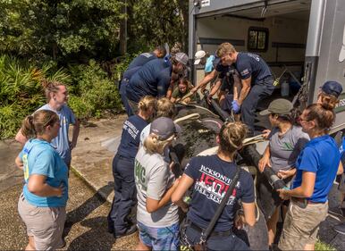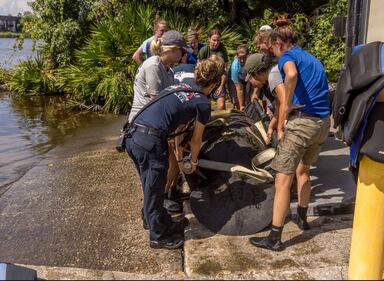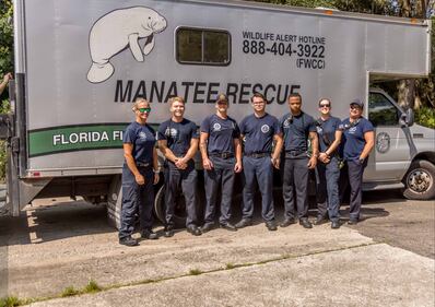 Injured manatee rescued in Ortega River The Jacksonville Fire and Rescue Department assisted Florida Fish and Wildlife Conservation Commission and The Jacksonville Zoo in rescuing an injured manatee in the Ortega River. (Jacksonville Fire and Rescue Department)