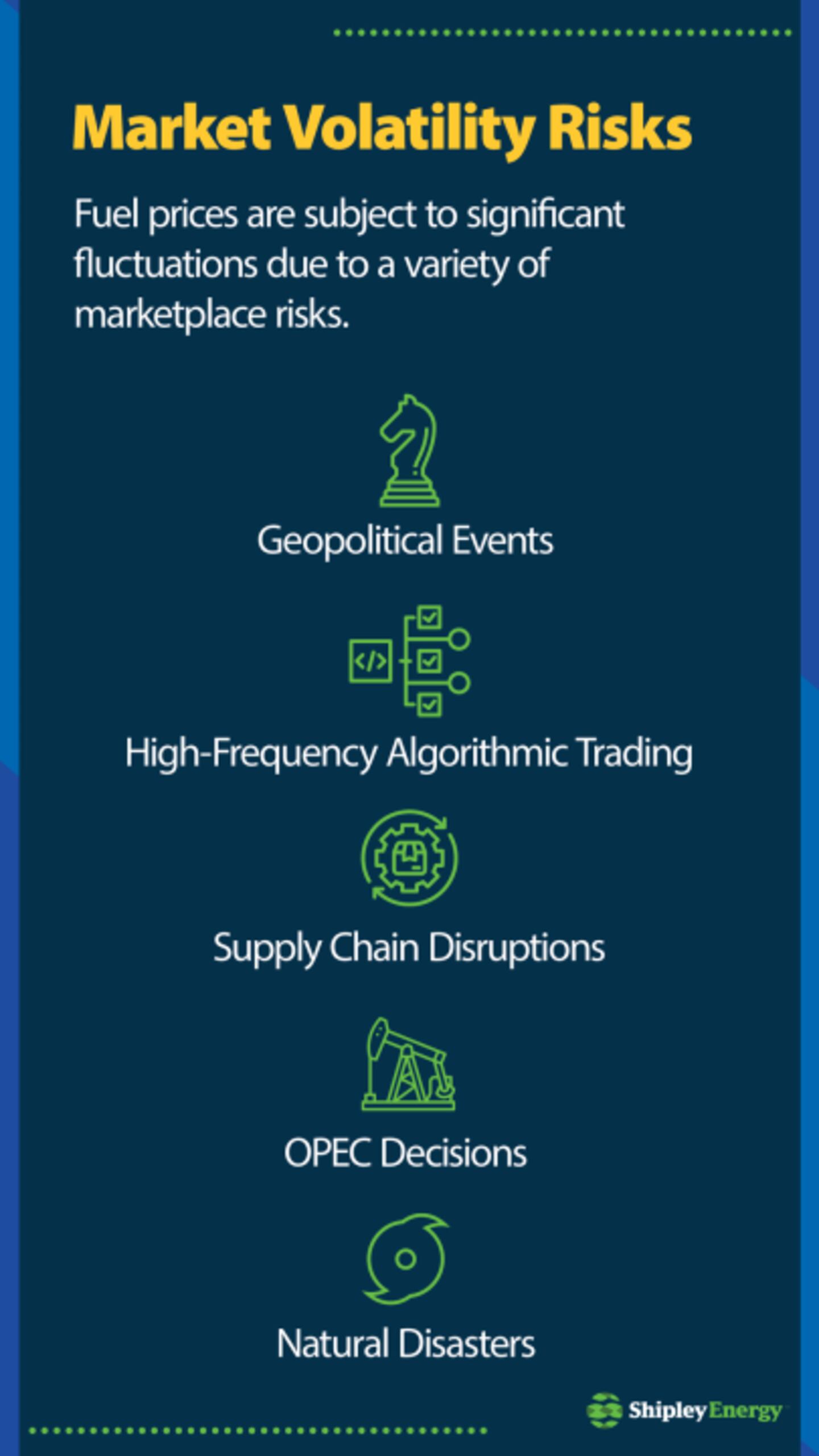 Shipley Energy notes that, with wholesale fuel markets changing rapidly with political, weather and trading events, businesses and organizations using large amounts of fuel should address marketplace risks around pricing and fuel supply. (Shipley Energy/Shipley Energy)