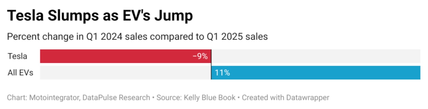 That is one of the key findings from a new analysis by Motointegrator, conducted in collaboration with the research experts at DataPulse Research. Tesla's market share is falling, and investor confidence is also waning—but it is not because drivers are anti-electric. On the contrary, EV sales overall are rising, with electric vehicle sales in the U.S. up 11% for the same period.