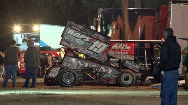 Footage showed race fans scattering as the car barreled through a fence shortly before 9:30 p.m. on turn two of a DIRTcar Nationals World of Outlaws event.