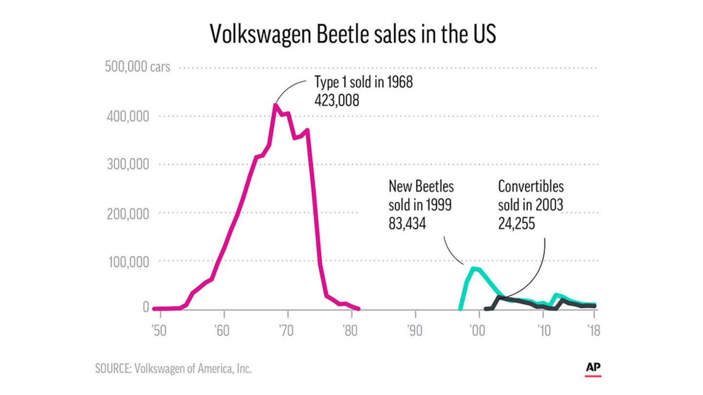 The last generation of the Beetle sold about 1.7 million cars, Car and Driver reported.