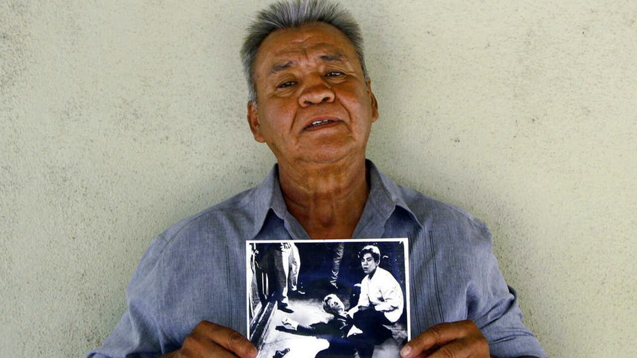 In this June 5, 1968 file photo, Juan Romero, right, helps other bystanders tend to Senator Robert F. Kennedy as he lies on the floor of the Ambassador Hotel in Los Angeles, moments after he was shot. Romero, who was a 17-year-old busboy, was shaking the senator's hand when gunfire broke out. He held the mortally wounded Kennedy as he lay on the ground, struggling to keep the senator's bleeding head from hitting the floor. Romero died Oct. 1, 2018, at the age of 68.