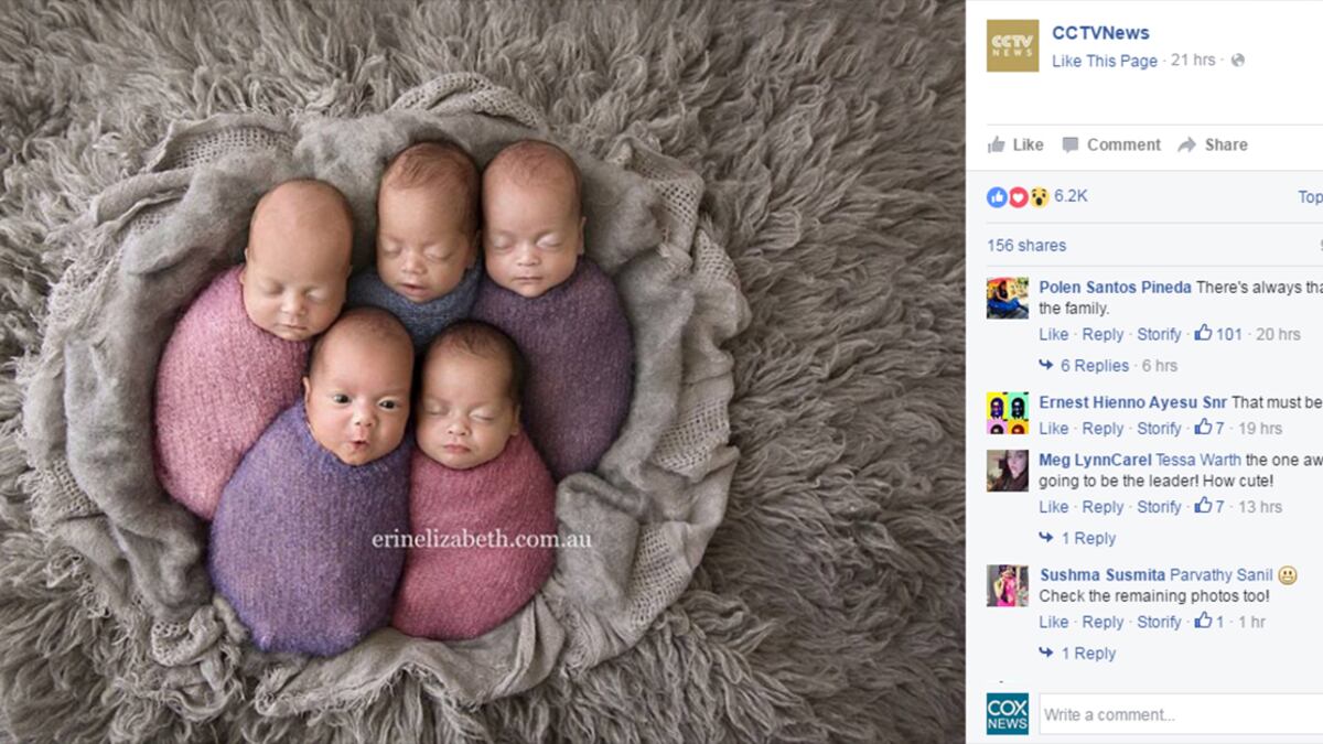 Photos of mom Kim Tucci and her quintuplets are getting a lot of attention online. According to CCTV, the 26-year-old mother gave birth naturally to four girls and one boy in January.