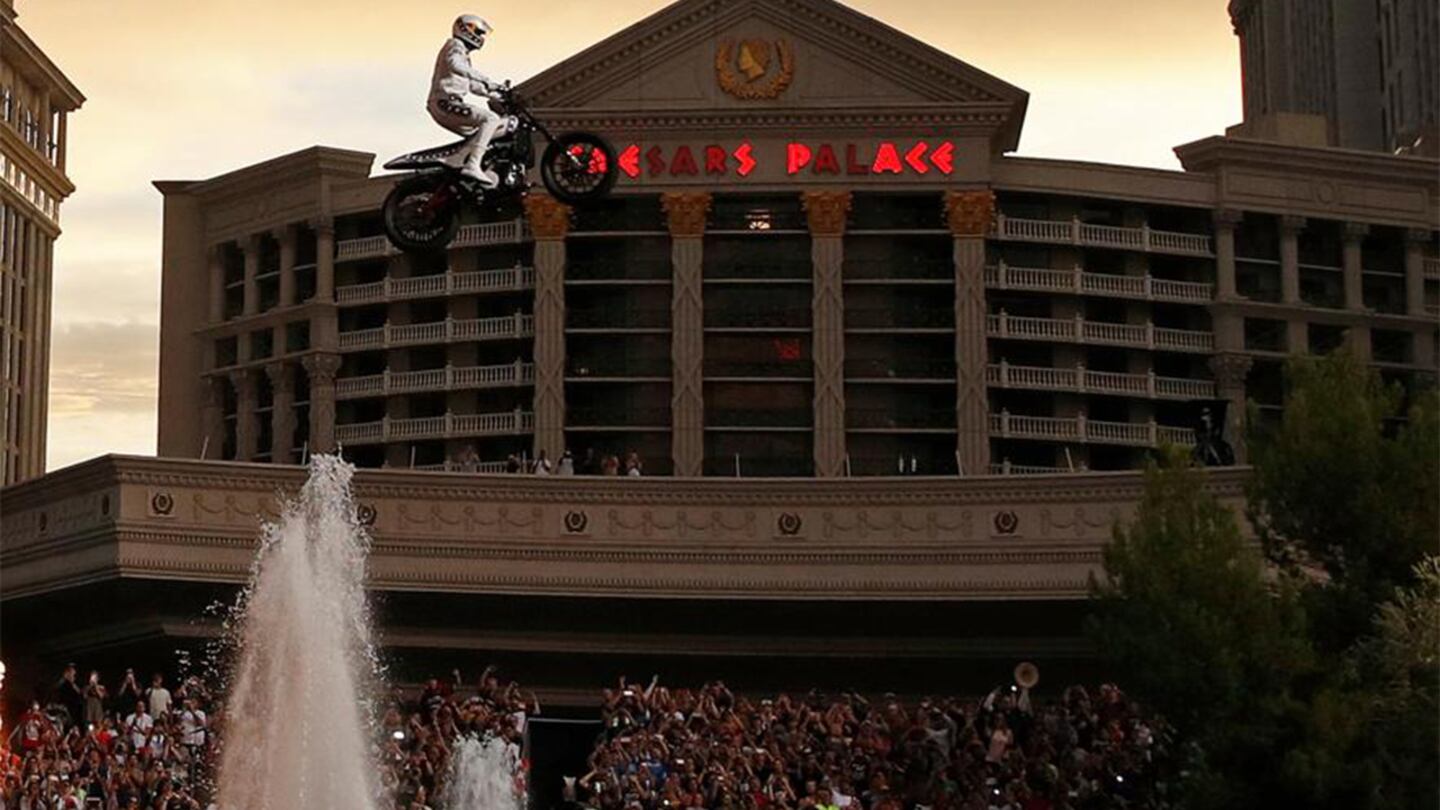 The grand finale was the most technical and infamous -- a jump over the main fountain at Caesar’s Palace.