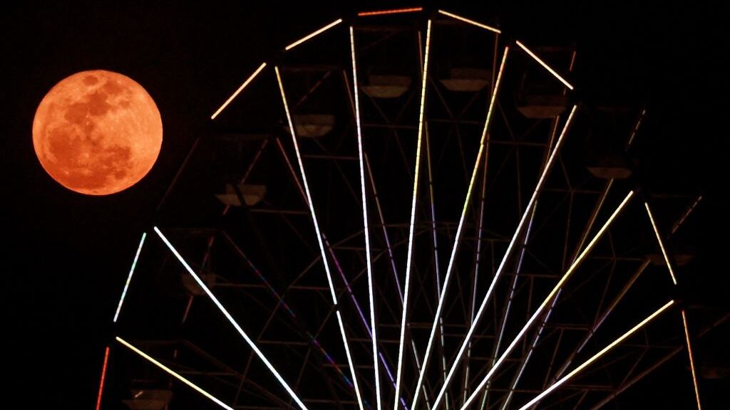 Blue Supermoon A super blue moon rises behind a ferris wheel located at Stokes Hill Wharf in the Northern Territory capital city of Darwin on August 31, 2023. (Photo by DAVID GRAY / AFP) (Photo by DAVID GRAY/AFP via Getty Images) (DAVID GRAY/AFP via Getty Images)