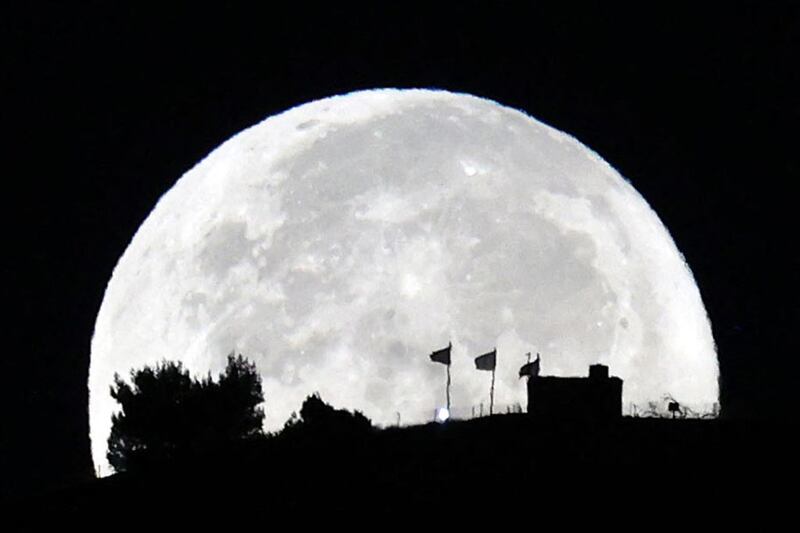 Blue Supermoon The super blue moon is pictured over Nablus on August 31, 2023. (Photo by Zain JAAFAR / AFP) (Photo by ZAIN JAAFAR/AFP via Getty Images) (ZAIN JAAFAR/AFP via Getty Images)