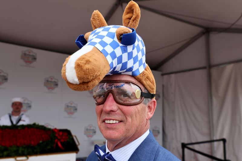 2023 Kentucky Derby: Yabba dabba doo: A spectator enjoys the atmosphere before the 149th Kentucky Derby. (LEANDRO LOZADA/AFP via Getty Images)