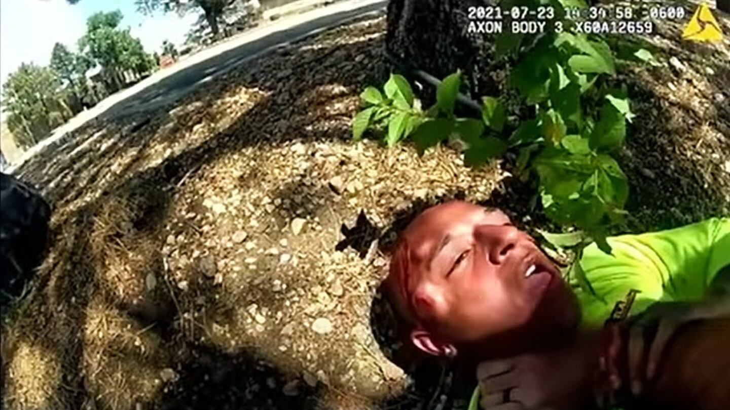 AURORA, Colo. — A beleaguered Colorado police department is again under fire after body-worn cameras captured one of its officers pistol-whipping an unarmed Black man and holding a gun to the back of his head.