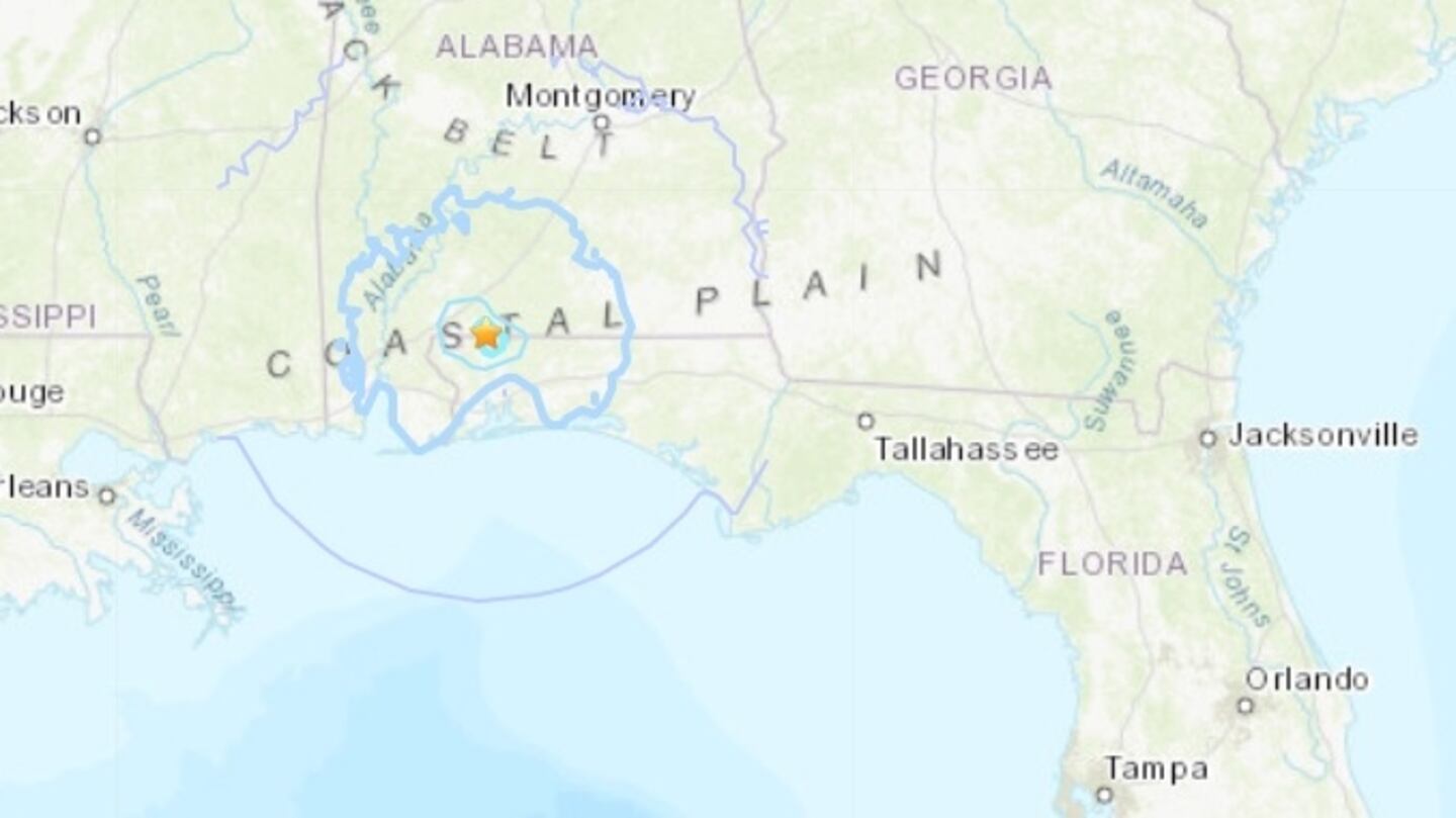The earthquake was recorded at 11 a.m. at Mount Carmel in Santa Rosa County near the border of Florida and Alabama, according to the U.S. Geological Survey. The agency initially rated it at 4.0, but later downgraded the magnitude.