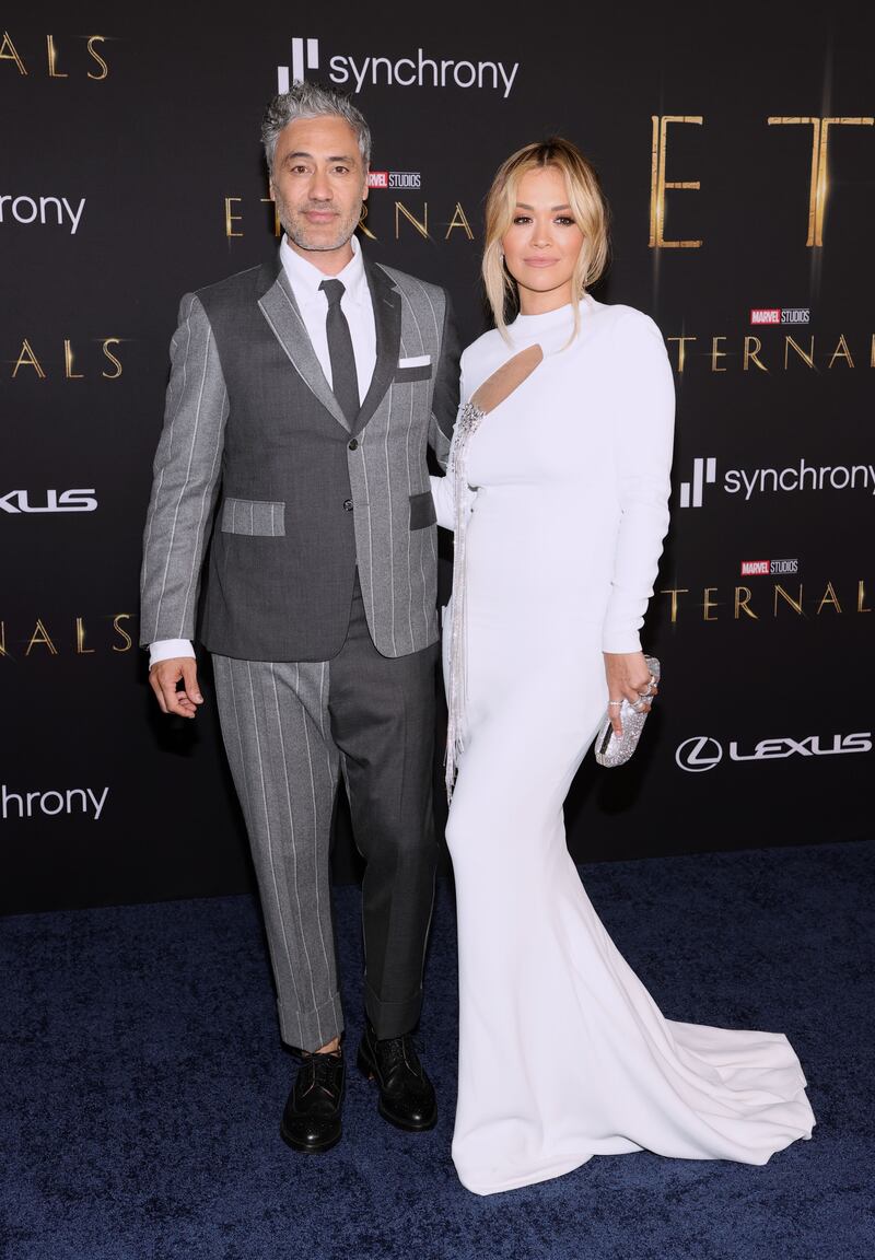Photos: Angelina Jolie, Salma Hayek stun on 'Eternals' red carpet Taika Waititi and Rita Ora attend Marvel Studios' "Eternals" premiere on October 18, 2021, in Los Angeles. (Rich Fury/Getty Images)