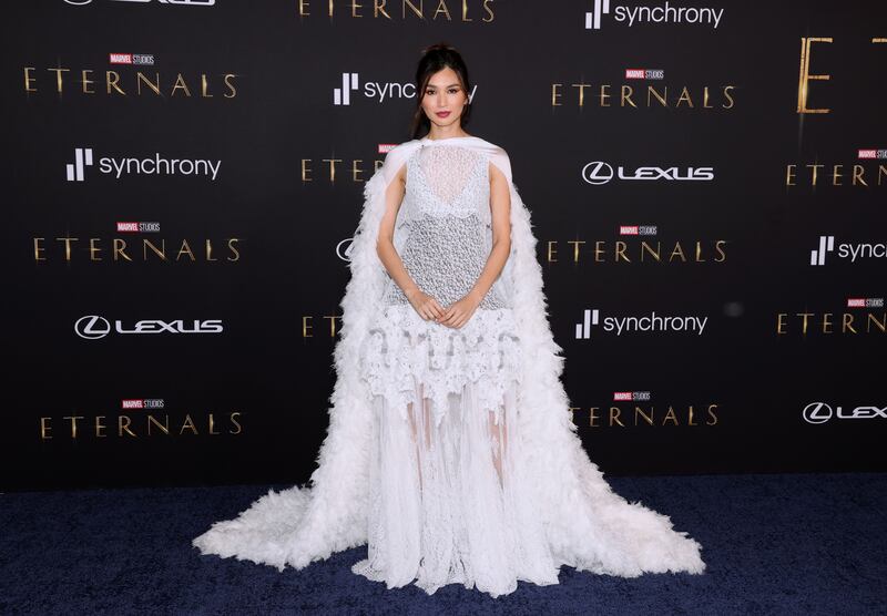 Photos: Angelina Jolie, Salma Hayek stun on 'Eternals' red carpet Gemma Chan attends Marvel Studios' "Eternals" premiere on October 18, 2021, in Los Angeles. (Rich Fury/Getty Images)