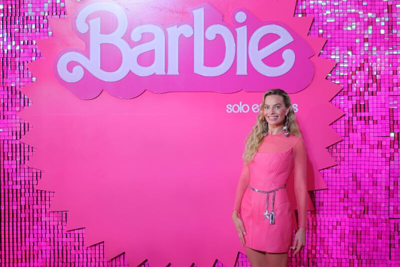 Think pink NAUCALPAN DE JUAREZ, MEXICO - JULY 06: Margot Robbie poses during the pink carpet for 'Barbie' at Plaza Parque Toreo on July 06, 2023 in Naucalpan de Juarez, Mexico. (Photo by Hector Vivas/Getty Images) (Hector Vivas/Getty Images)