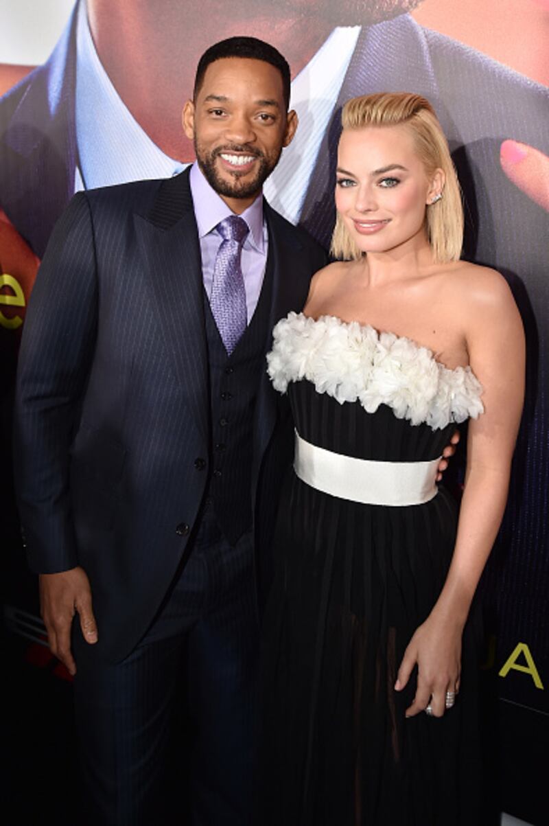 Photos: Margot Robbie through the years 2015: Actors Will Smith (left) and Margot Robbie attends the premiere of Warner Bros. Pictures' "Focus" at TCL Chinese Theatre on February 24, 2015, in Hollywood, California. (Kevin Winter/Getty Images)