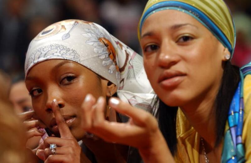Brandy through the years AUBURN HILLS, MI - JANUARY 17: Singer/actress Brandy and friend Alexis Welch signals to her fiance Quentin Richardson #3 of the Phoenix Suns after he received his fourth foul while taking on the Detroit Pistons on January 17, 2005 at the Palace of Auburn Hills in Auburn Hills, Michigan. The Pistons defeated the Suns 94-80. NOTE TO USER: User expressly acknowledges and agrees that, by downloading and or using this photograph, User is consenting to the terms and conditions of the Getty Images License Agreement. Mandatory Copyright Notice: Copyright 2005 NBAE (Photo by Allen Einstein/NBAE via Getty Images) (Allen Einstein/NBAE via Getty Images)