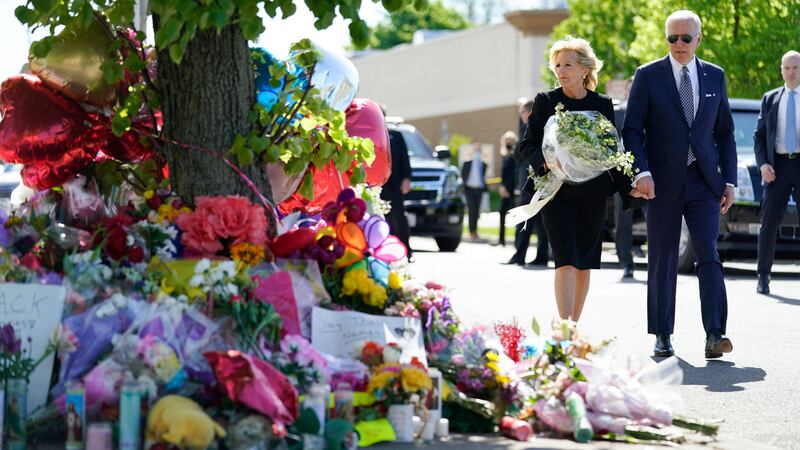 Photos: Biden visits Buffalo after deadly supermarket shooting President Joe Biden and first lady Jill Biden visit the scene of a shooting at a supermarket to pay respects and speak to families of the victims of Saturday's shooting in Buffalo, N.Y., Tuesday, May 17, 2022. (AP Photo/Andrew Harnik)