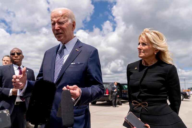 Photos: Biden visits Buffalo after deadly supermarket shooting President Joe Biden and first lady Jill Biden board Air Force One at Washington, Md., Tuesday, May 17, 2022, to travel to Buffalo, N.Y., to pay their respects and speak to families of the victims of Saturday's shooting at a supermarket. (AP Photo/Andrew Harnik)