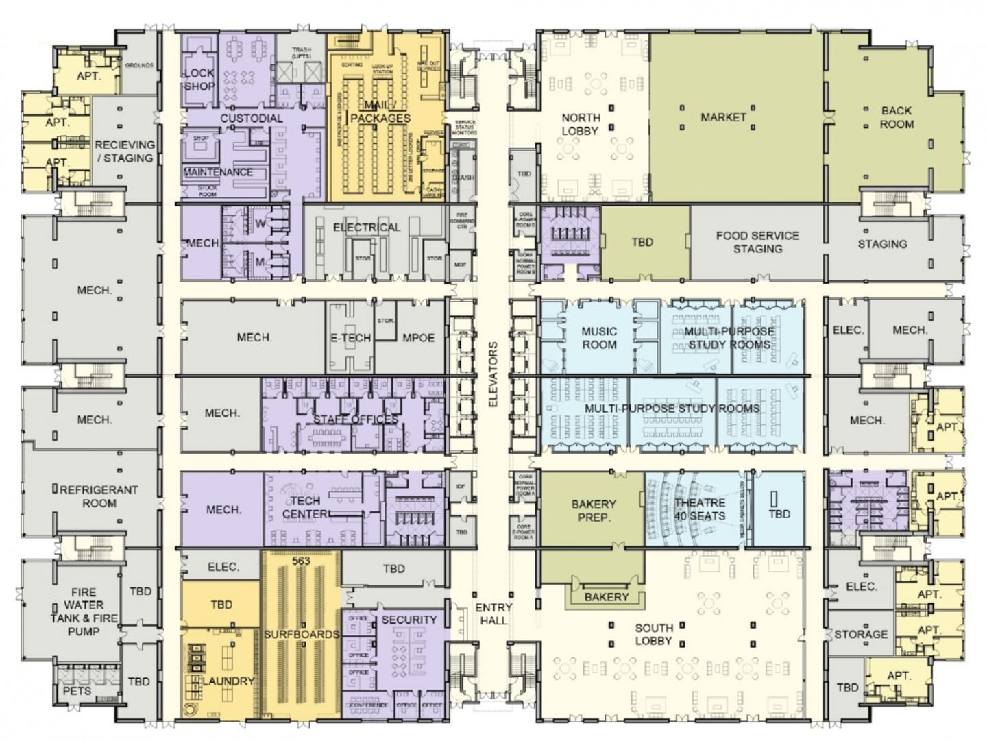 The blueprints show more than 90% of the resident rooms in the dorm will not have any windows or natural light, or any way for natural air to get in. Instead, the rooms will have fake windows that offer soft lighting.