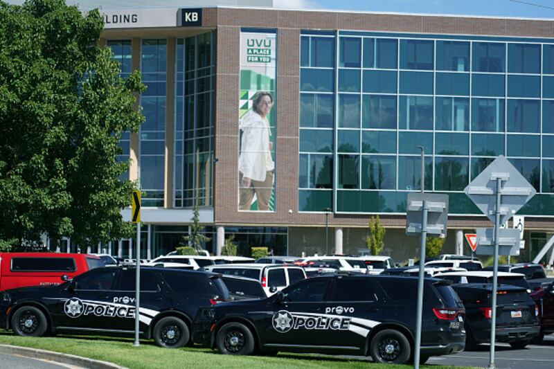 Update 4:19 p.m. ET, Sept. 10: Despite school officials saying earlier that the alleged shooter was in custody, posting it to X, Utah Valley University spokesperson Scott Trotter said in a statement, “The suspect is not in custody,” CNN and the Deseret News reported.