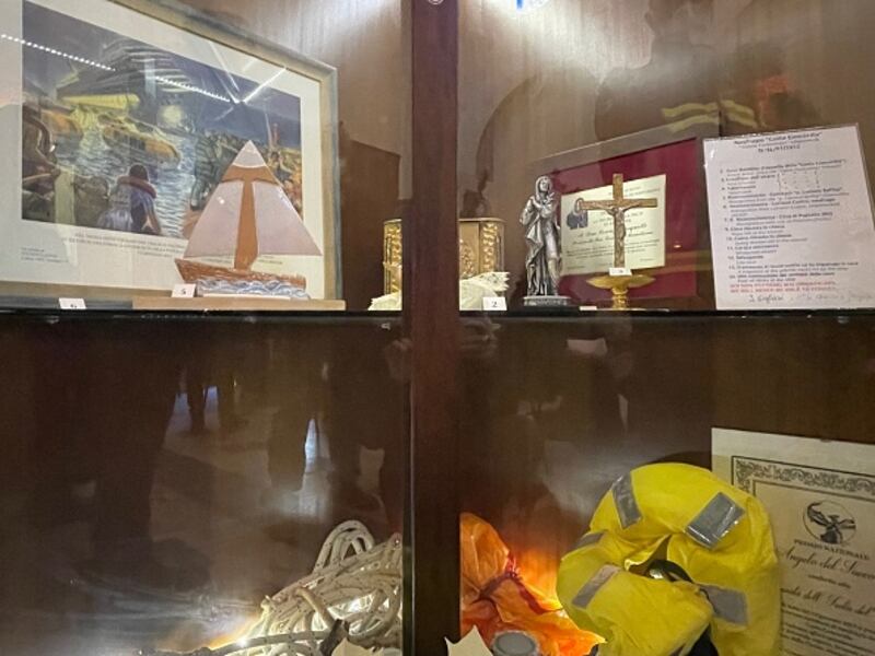 10 years later Memorabilia are seen during the commemorations to mark ten years since the Concordia disaster on January 13, 2022 in Giglio Porto, Italy. Regarded as one of the worst maritime disasters of the 21st century, 32 people were killed after the Costa Concordia cruise ship hit a rock near the island of Giglio and sunk on 13 January 2012. (Photo by Laura Lezza/Getty Images) (Laura Lezza/Getty Images)