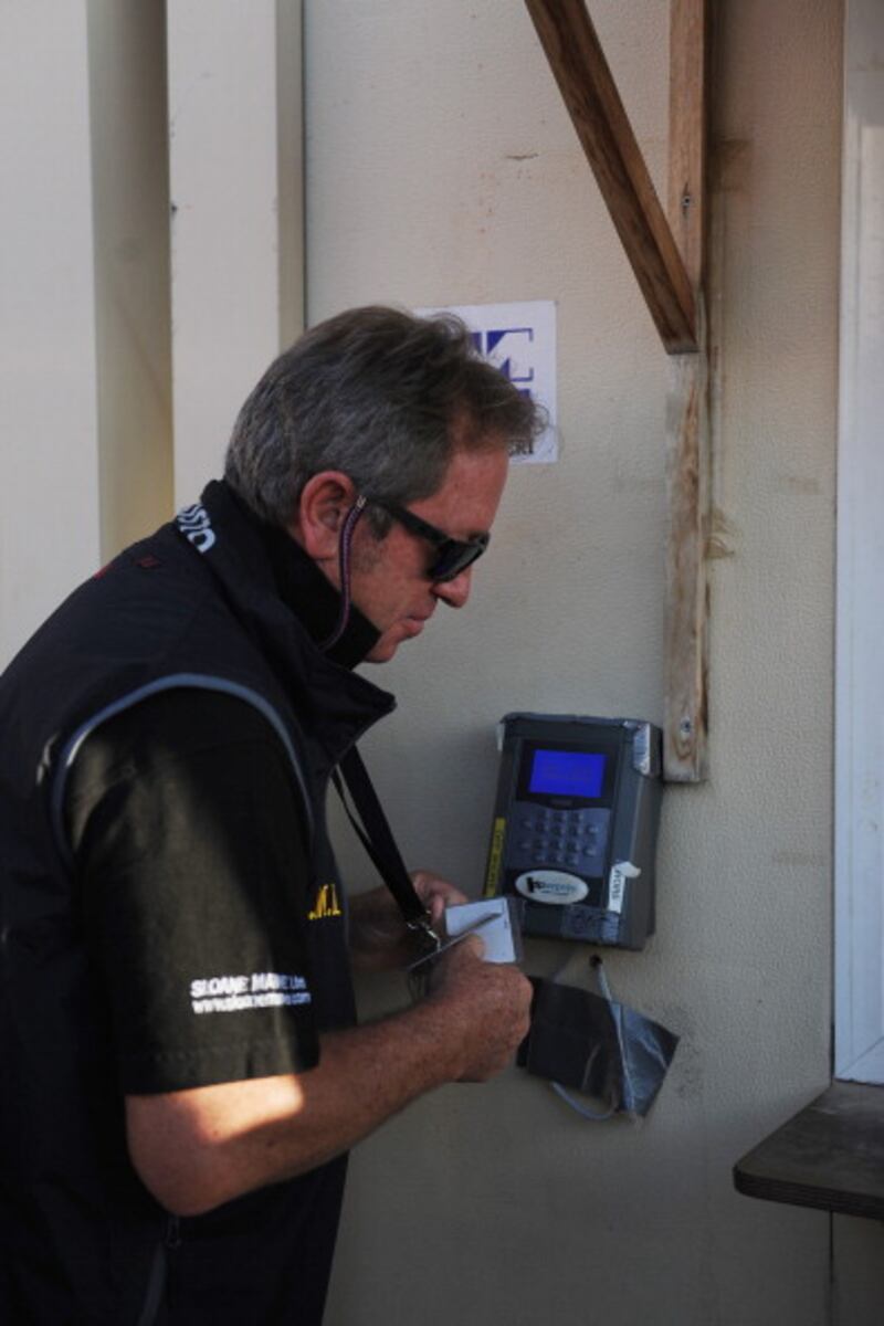 10 years later Titan Senior Salvage Master Nick Sloane is seen with his badge for the last time in Giglio Porto before the departure of the wrecked cruise ship Costa Concordia, on July 23, 2014 in Isola del Giglio, Italy. The ship is bound for it's home port of Genoa where it will be dismantled. The Costa Concordia capsized at the island of Giglio in 2012 killing 32 passengers. (Photo by Laura Lezza/Getty Images) (Laura Lezza/Getty Images)