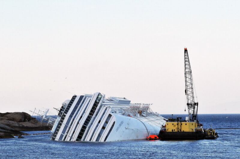 10 years later The cruise ship Costa Concordia lies stricken off the shore of the island of Giglio, on January 16, 2012 in Giglio Porto, Italy. More than four thousand people were on board when the ship hit rocks last Friday. The official death toll is now six, with a further 16 people still missing. The rescue operation was temporarily suspended earlier due to the ship moving as it slowly sinks further into the sea. (Photo by Laura Lezza/Getty Images) (Laura Lezza/Getty Images)