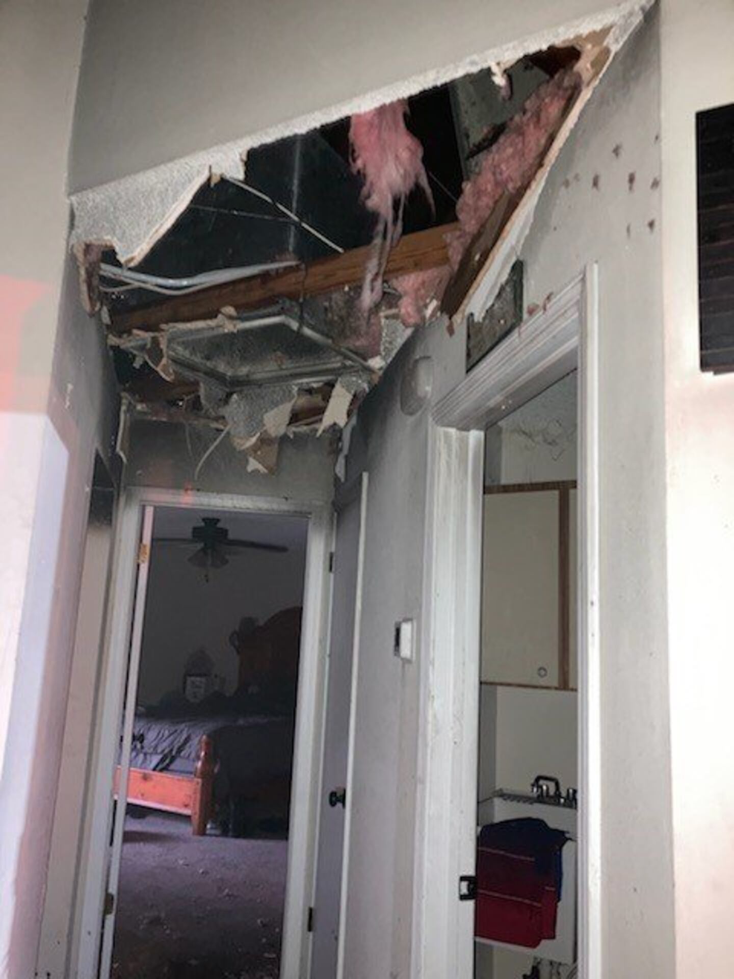 Photos shared by HCFES on Facebook show the extensive damage caused by the fire to the kitchen and roof of the home.