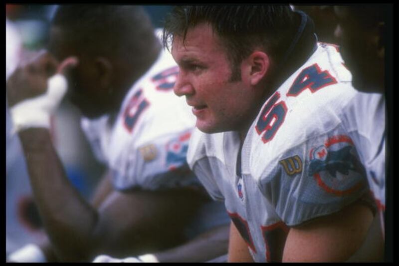 2023 Class of the Pro Football Hall of Fame 6 Oct 1996: Linebacker Zach Thomas of the Miami Dolphins looks on during a game against the Seatte Seahawks at Pro Player Stadium in Miami, Florida. The Seahawks won the game, 22-15. Mandatory Credit: Andy Lyons /Allsport (Andy Lyons/Getty Images)