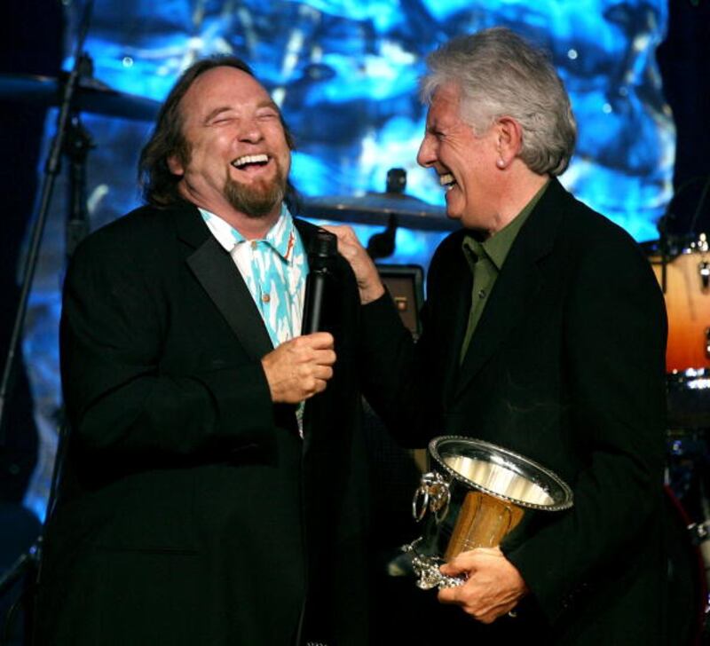 Photos: Graham Nash through the years 2006: Musicians Stephen Stills and Graham Nash accept their BMI Icon Award onstage at the 54th annual BMI Pop Awards at the Regent Beverly Wilshire Hotel on May 16, 2006, in Beverly Hills, California. (Michael Buckner/Getty Images)