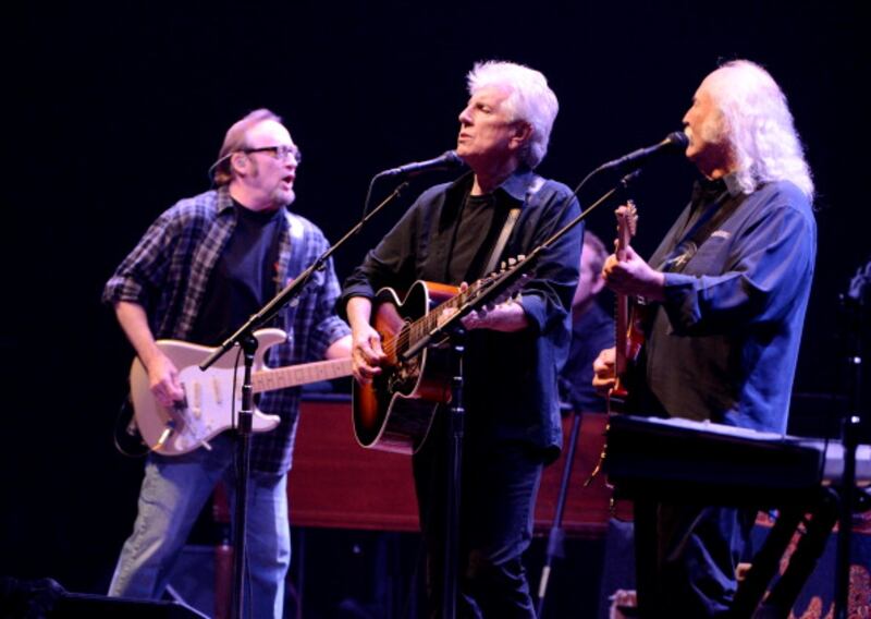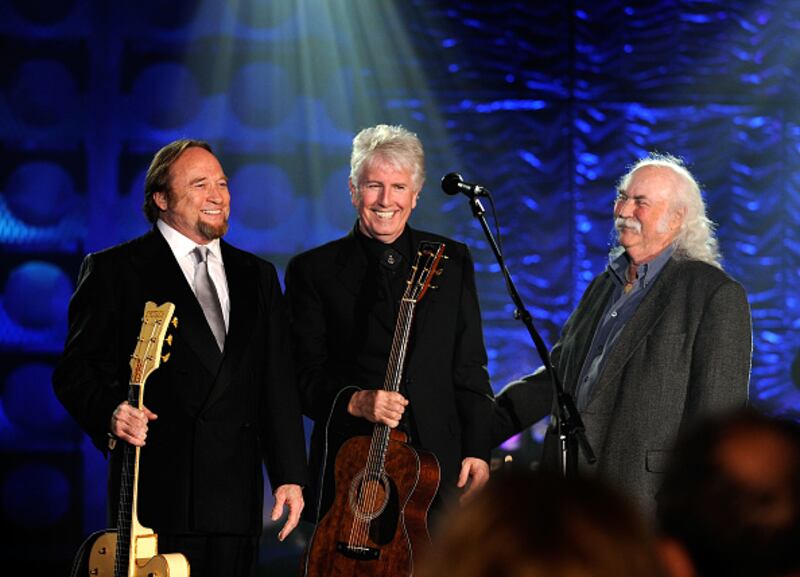 Photos: Graham Nash through the years 2015: Musicians Stephen Stills (left), Graham Nash and David Crosby of Crosby, Stills & Nash perform onstage at the 25th anniversary MusiCares 2015 Person of the Year Gala honoring Bob Dylan at the Los Angeles Convention Center on February 6, 2015, in Los Angeles. (Larry Busacca/Getty Images for NARAS)