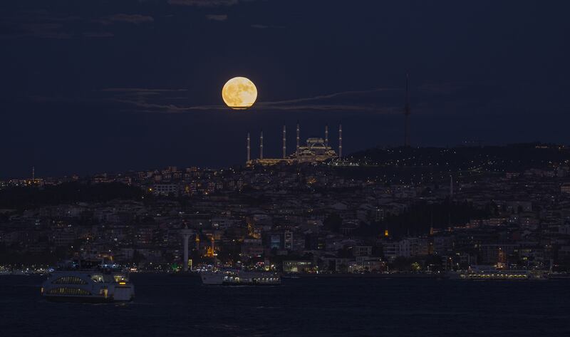 Photos: Halloween Blue Moon brightens the night sky Blue Moon, a second full moon in a month of the common calendar, rises over Great Camlica Mosque, Istanbul, Turkey on October 31, 2020. (Isa Terli/Anadolu Agency via Getty Images)
