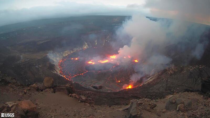 Photos: Hawaii's Kilauea volcano erupts This webcam image provided by the United States Geological Survey shows a view of an eruption that has begun in the Halemaumau crater at the summit of Hawaii's Kilauea volcano, Wednesday, Sept. 29, 2021. (USGS via AP)